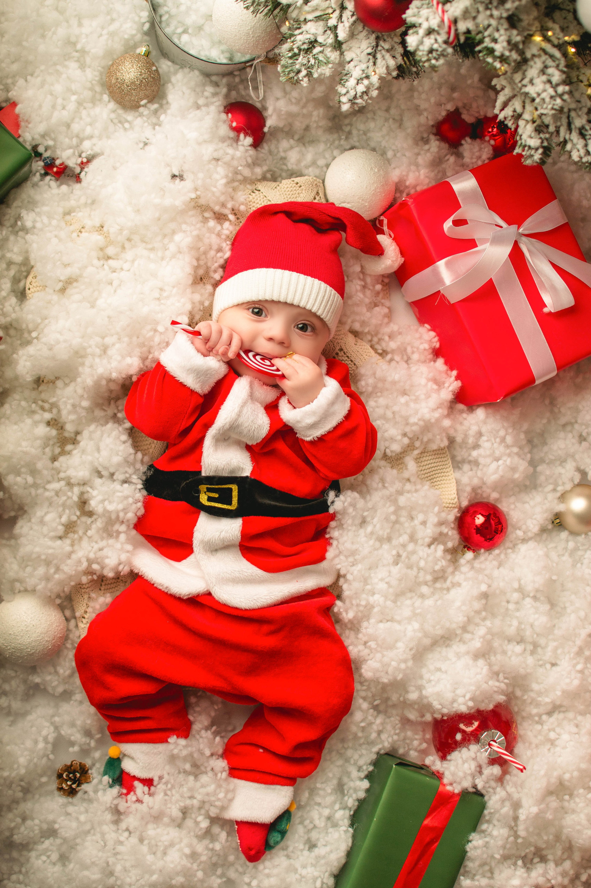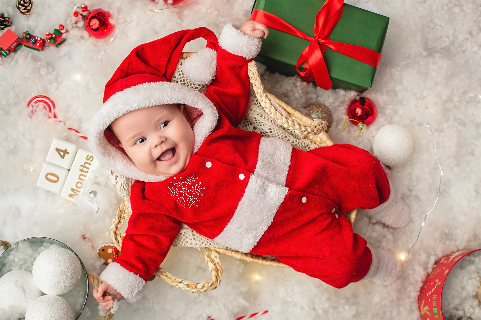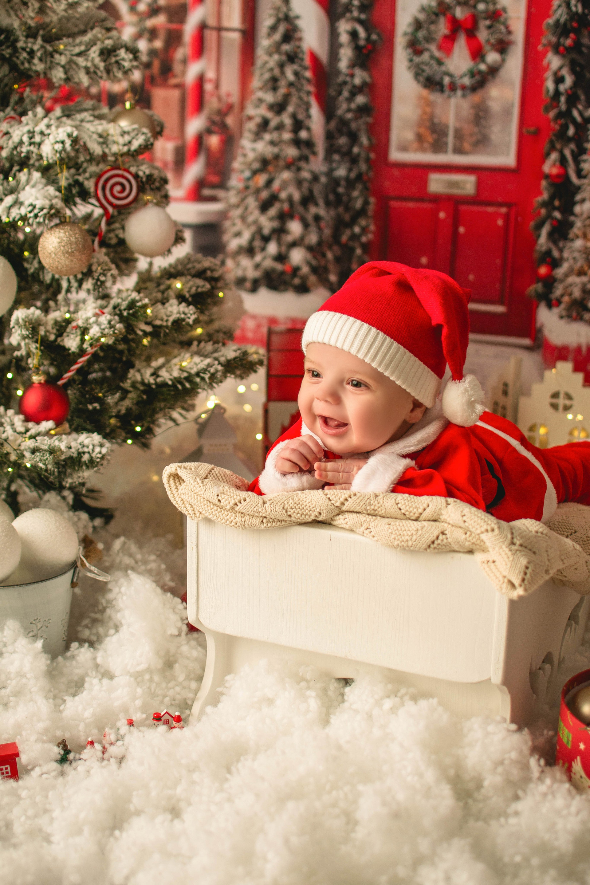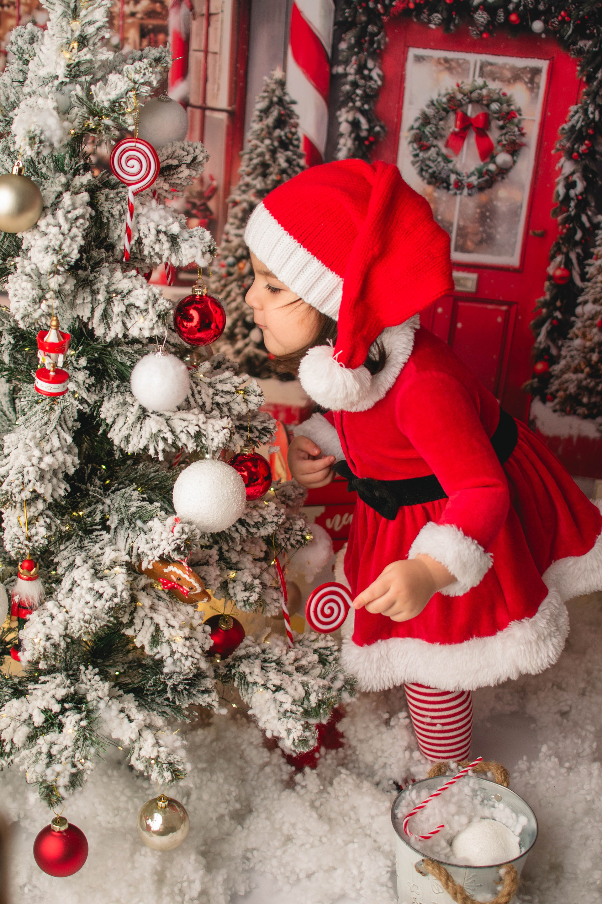 Белоснежный камин, мерцающие гирлянды, рождественский венок и пушистая ёлка с бордовыми и золотыми акцентами создают идеальное пространство для душевных снимков.